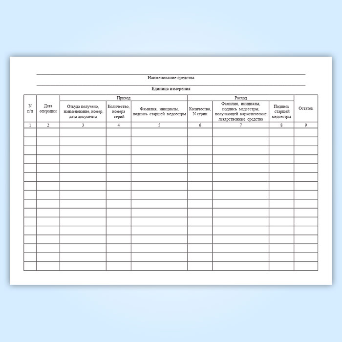 - Фамилия, инициалы, подпись медсестры, получающей наркотические лекарственные средства