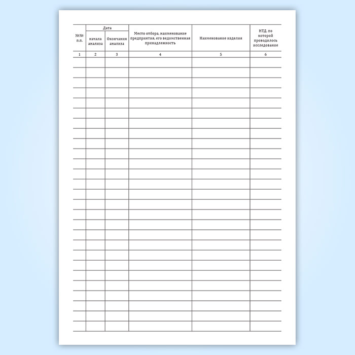 Форма журнала регистрации проб и результатов исследований (посудохозяйственных изделий, одежды, игрушек и т.д.) из полимерных и других материалов (Форма N 338-у) утверждена Приказом Минздрава СССР №1030 " Об утверждении форм первичной медицинской документации учреждений здравоохранения" .