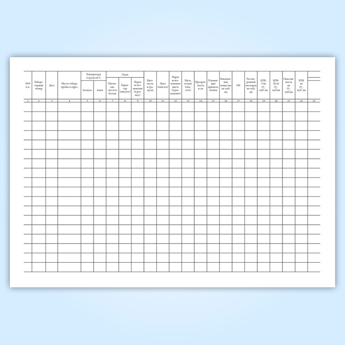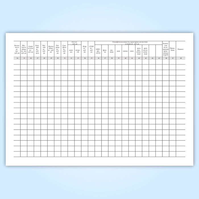 Журнал учета результатов исследований воды поверхностных водоемов, прибрежных зон морей, сточных вод (форма № 324-у)