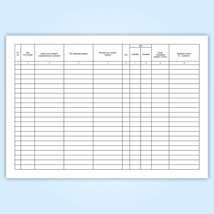 Журнал регистрации материалов и документов в гистологическом отделении (форма 190/у)