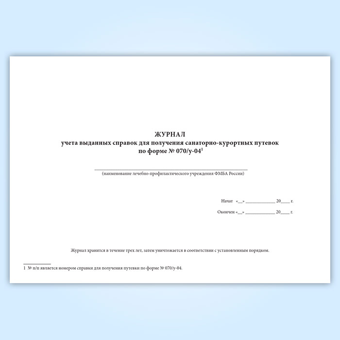 Журнал учета выданных справок для получения санаторно-курортных путевок (форма № 070/у-04)