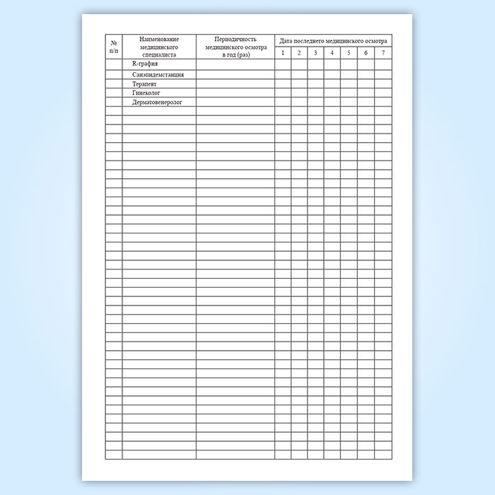 Графы журнала учета медицинских осмотров декретированного персонала: