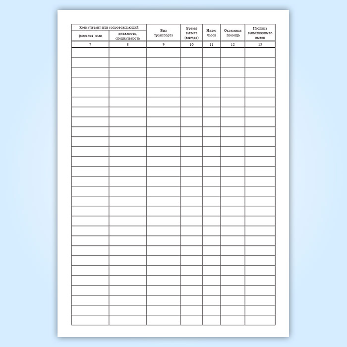 Журнал регистрации приема вызовов и их выполнения отделением экстренной и планово-консультативной помощи (Форма 117/у) имеет графы: