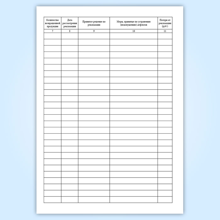 Журнал учета рекламаций (претензий) на продукцию имеет графы: