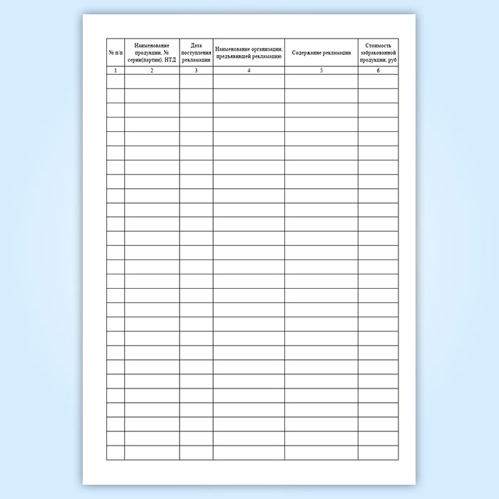 Журнал учета рекламаций (претензий) на продукцию