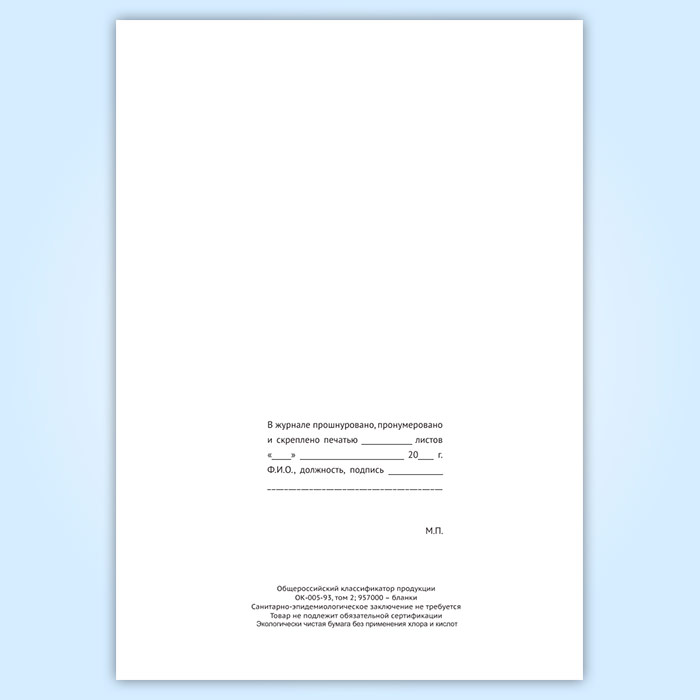 Вы получаете печатную продукцию прошнурованной и c местом для вашей печати в соответствии с действующими нормативными документами: