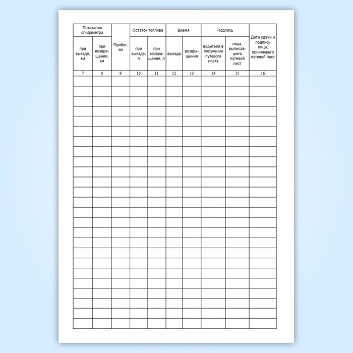 16. Дата сдачи и подпись лица, принявшего путевой лист