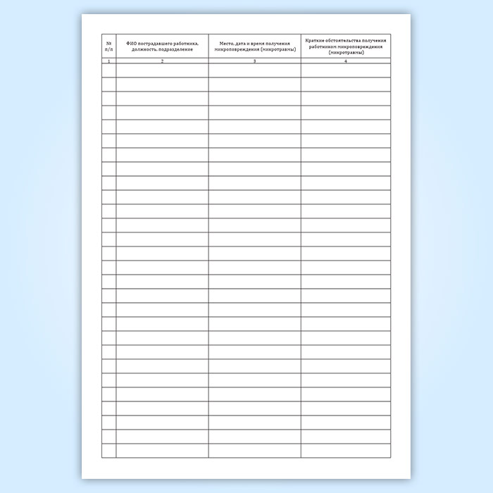 В целях учета и рассмотрения обстоятельств и причин, приведших к возникновению микроповреждений (микротравм) работников, предупреждения производственного травматизма, работодателю рекомендуется организовать регистрацию происшедших микроповреждений (микротравм) в Журнале учета микроповреждений (микротравм) работников.