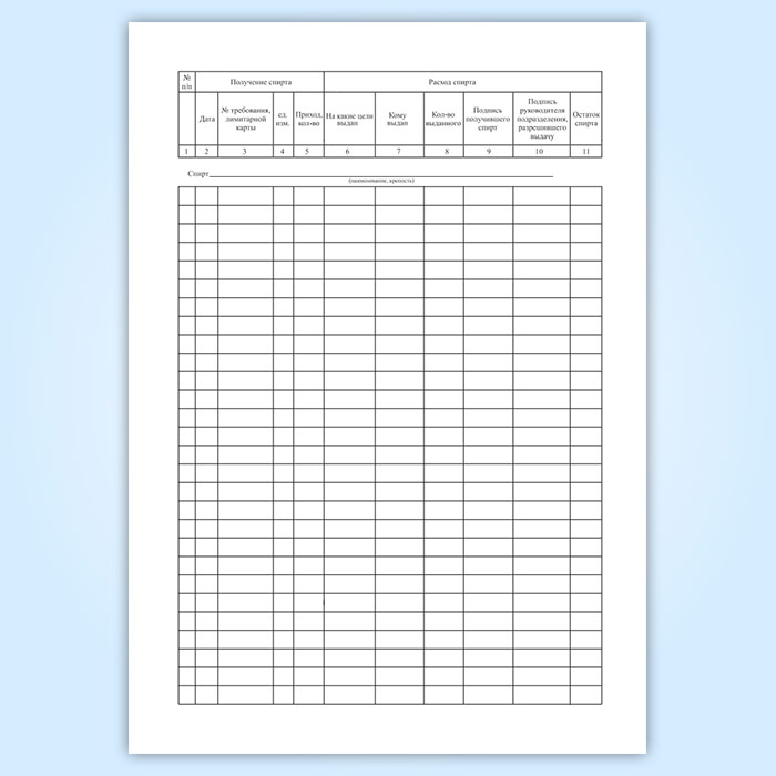 Данный журнал применяется в организациях для строгого учета прихода и расхода спирта.