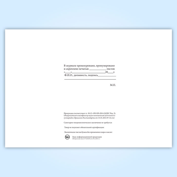 Вы получаете печатную продукцию прошнурованной и c местом для вашей печати в соответствии с действующими нормативными документами: