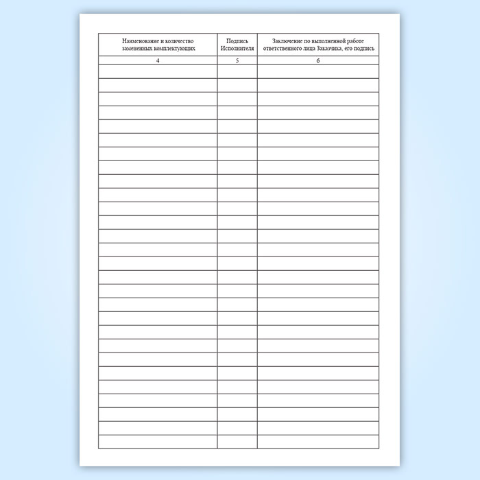 Все проведенные работы по ТО и ППР, в том числе по контролю качества, должны фиксироваться в журнале регистрации работ по ТО и ППР, один экземпляр которого должен храниться у Заказчика, другой у Исполнителя.