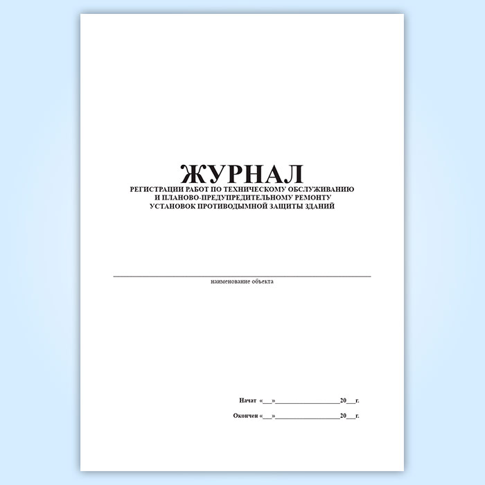 Журнал регистрации работ по техническому обслуживанию и планово-предупредительному ремонту установок противодымной защиты зданий