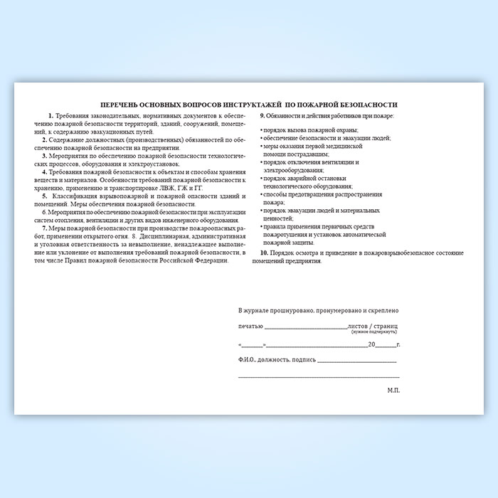 Журнал регистрации инструктажей по пожарной безопасности заполняется после проведения инструктажа лицом, ответственным за его проведение.