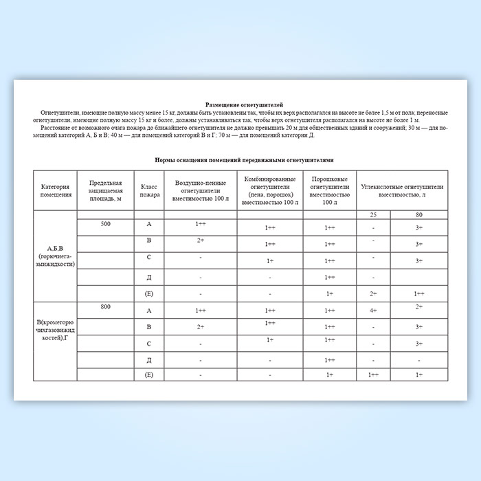 Согласно НПБ 166-97 Пожарная техника. Огнетушители. Требования к эксплуатации