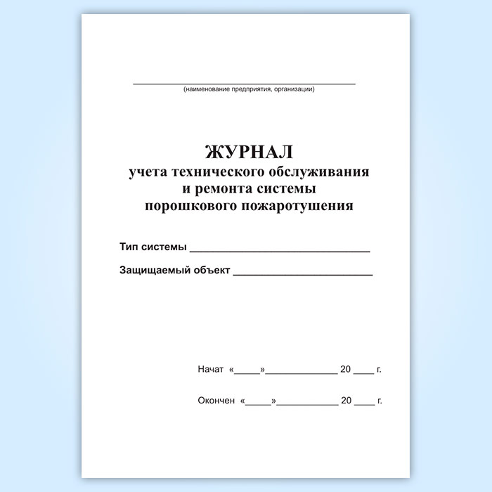 Журнал учета технического обслуживания и ремонта системы порошкового пожаротушения