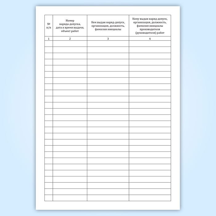 Выдача и сдача наряда-допуска регистрируются в журнале. Журнал хранится в течение 6 месяцев со дня внесения последней записи.