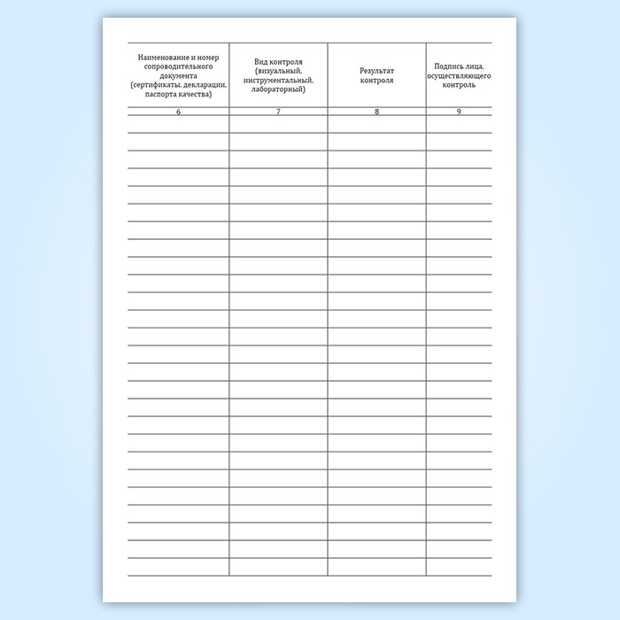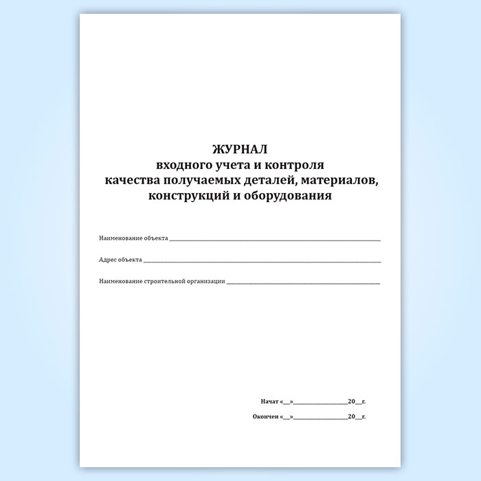 Входной учет и контроль качества получаемых деталей, материалов, конструкций и оборудования отражается в журнале, с указанием вида и результатов контроля.