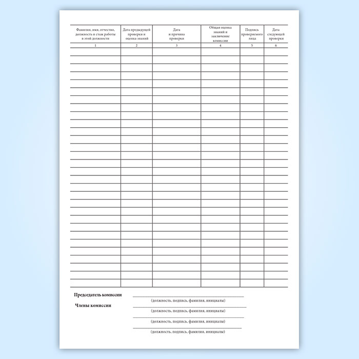 Журнал проверки знаний правил технической эксплуатации тепловых энергоустановок