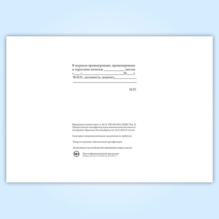 Вы получаете печатную продукцию прошнурованной и c местом для вашей печати в соответствии с действующими нормативными документами:
