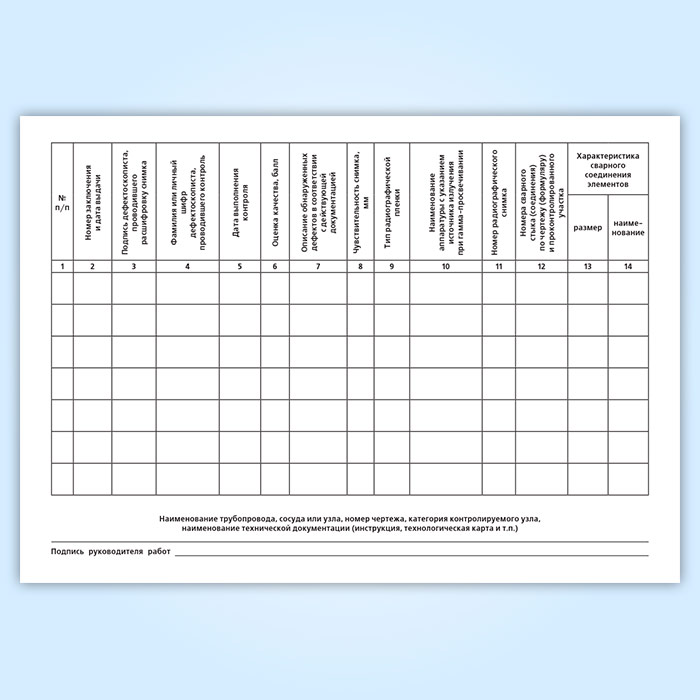См. также: Журнал радиографического контроля