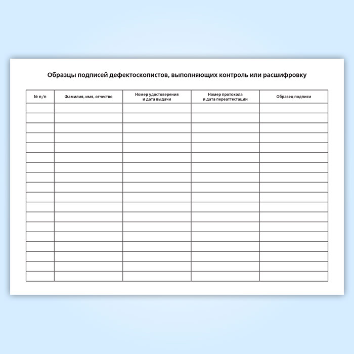 Образцы подписей дефектоскопистов, выполняющих контроль или расшифровку