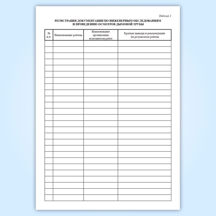 После пуска дымовой трубы в эксплуатацию основной технической документацией, отражающей работу и состояние сооружения, является паспорт дымовой трубы.