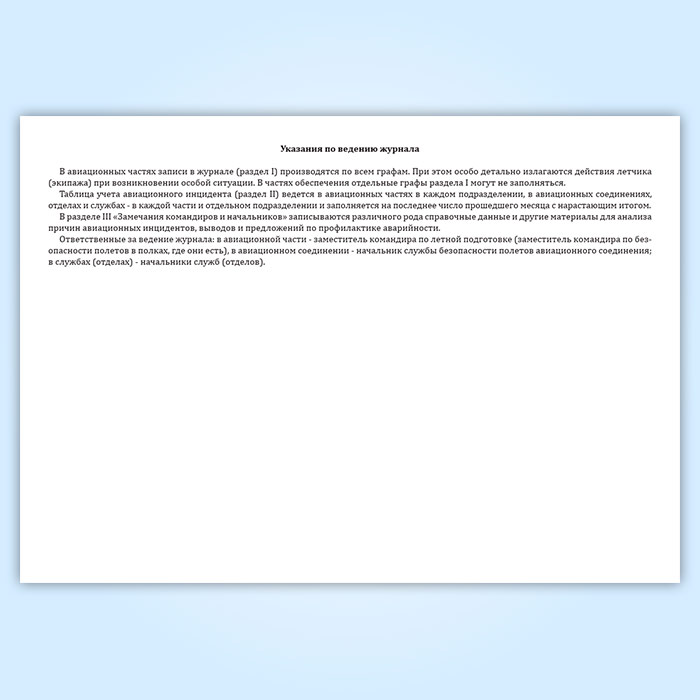 Форма журнала соответствует Приложению 13 к Правилам расследования авиационных происшествий и авиационных инцидентов с государственными воздушными судами в Российской Федерации.