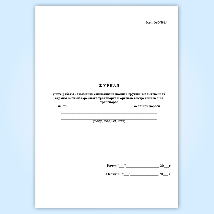 Для учета работы совместной специализированной группы ведомственной охраны железнодорожного транспорта и органов внутренних дел на транспорте ведут специальный журнал (Форма № ОГВ-15).