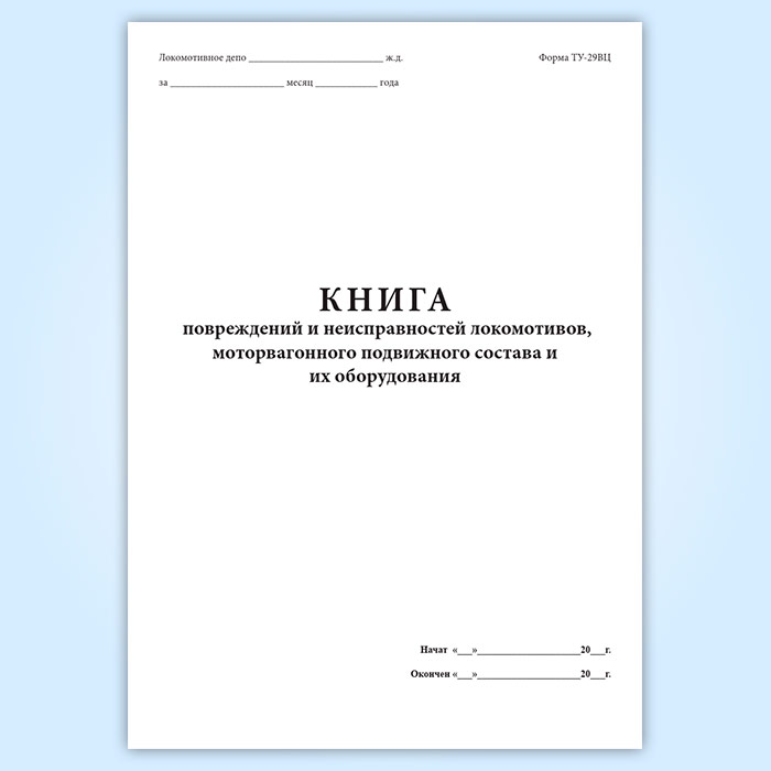 Книга повреждений и неисправностей локомотивов, моторвагонного подвижного состава и их оборудования (форма ТУ-29ВЦ)