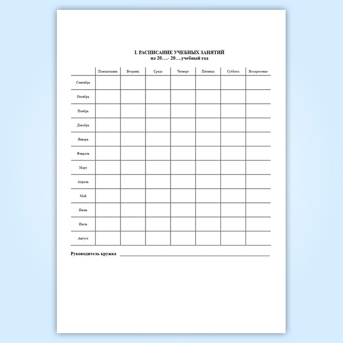 Журнал ведется руководителями кружков для каждой учебной группы и является основным документом по учету работы учебной группы и самого руководителя кружка. Записи заносятся аккуратно и разборчиво. Заполнение всех граф в каждом разделе обязательно. Журнал в период работы хранится в муниципальном бюджетном учреждении, по окончании учебного года сдается администрации учреждения, затем в архив. В расписании занятий указывается время их проведения. Дата прохождения медосмотра записывается один раз в год.