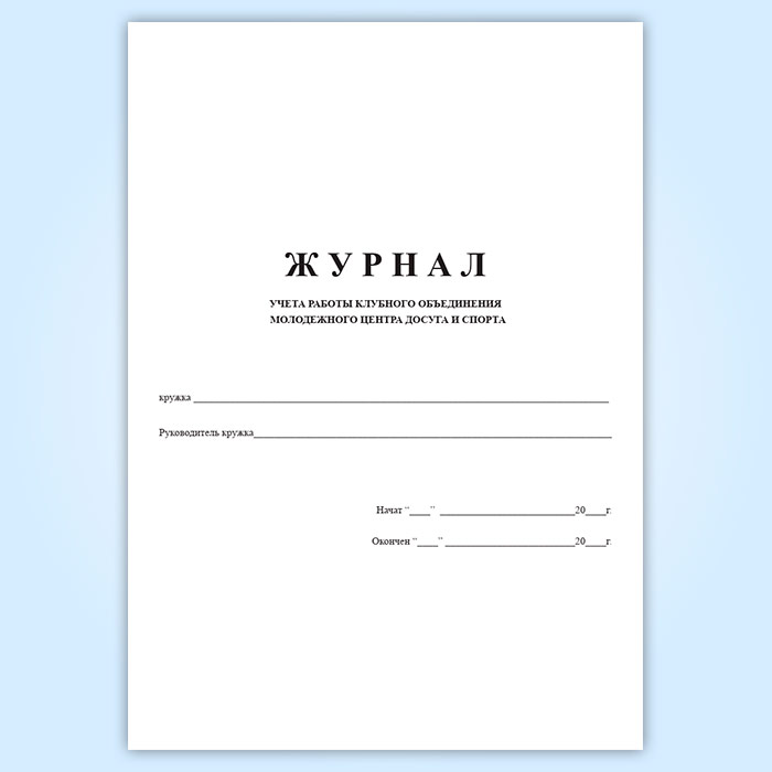 Журнал учета работы клубного объединения молодежного центра досуга и спорта