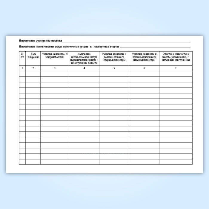 Журнал регистрации операций с использованными ампулами из-под наркотических средств и психотропных веществ у главной медицинской сестры стационарной медицинской организации