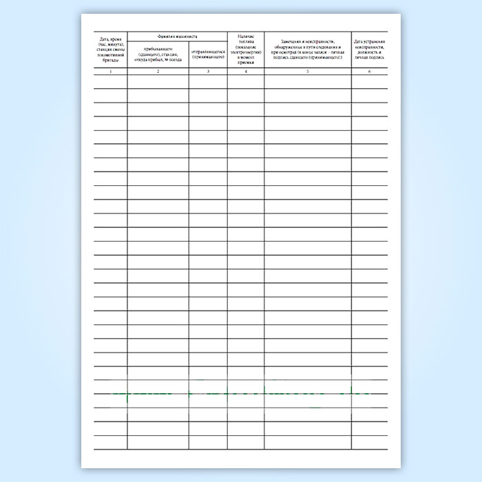 Бортовой журнал локомотива и моторвагонного подвижного состава