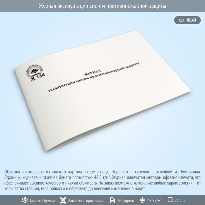 Журнал соответствует требованиям нормативной документации (в т.ч. приказ МЧС № 645) и обязателен к ведению на объектах различного назначения: от производственных помещений до офисных центров.