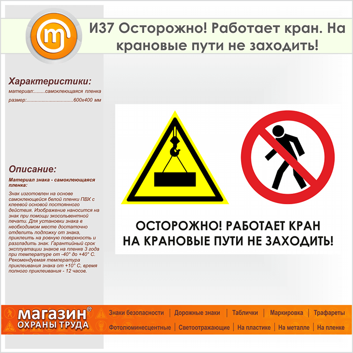Знак «Осторожно! Работает кран. На крановые пути не заходить!», И37