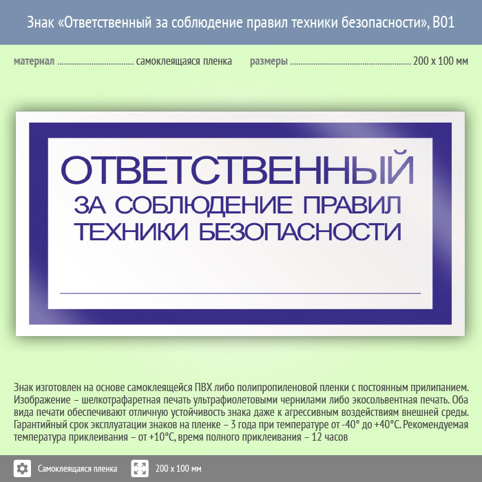 Знак B01 Ответственный за соблюдение правил техники безопасности
