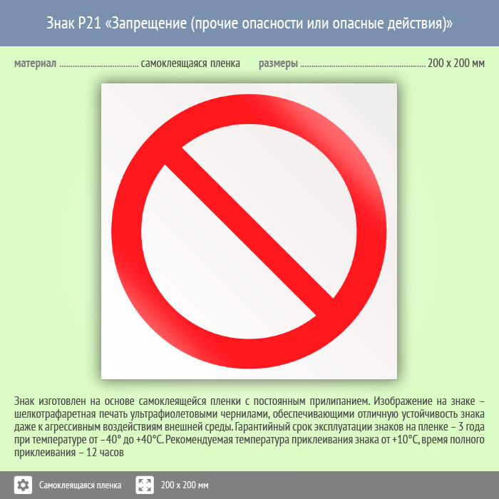 Знак P21 Запрещение (прочие опасности или опасные действия)