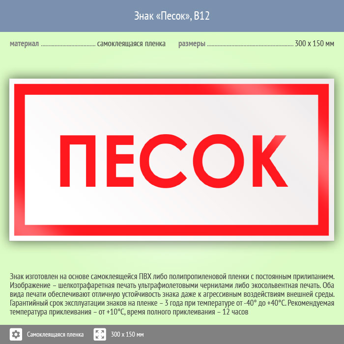 Знак «Песок» имеет размер 300х150 мм