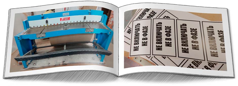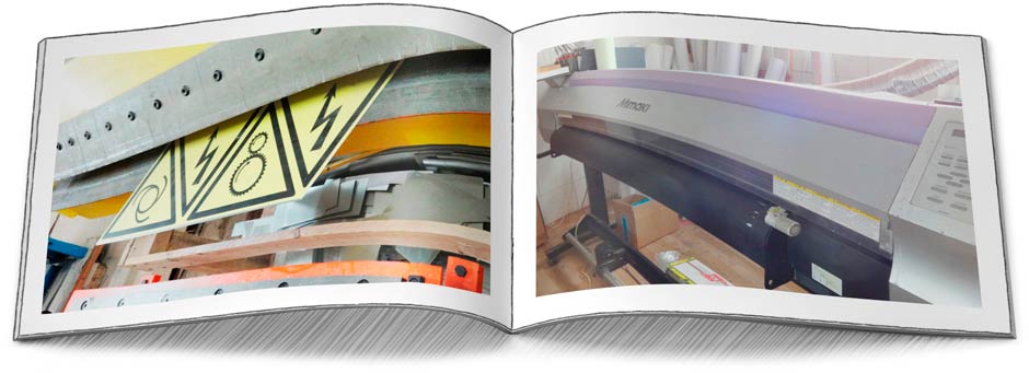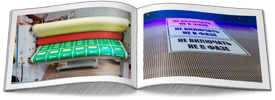 Мы обладаем производственными мощностями полного цикла. Это значит, что при производстве знаков безопасности, наклеек и вспомогательных табличек, мы делаем все сами — от раскройки материала, до печати и постпечатной обработки. Для этого у нас имеется все необходимое оборудование — фрезерный, лазерный и раскроечный станки, автоматический станок для печати УФ-красками по любым материалам, широкоформатное оборудование для печати небольших тиражей и знаков больших размеров, офсетное оборудование для печати больших тиражей по гибким материалам