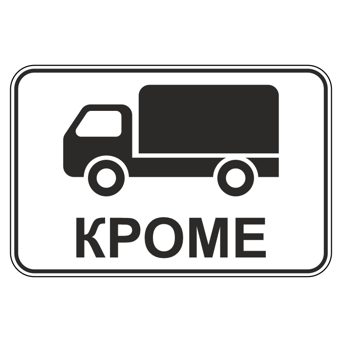 Дорожный знак 8.4.9 указывает вид транспортного средства, на который не распространяется действие знака. В данном случае это грузовые автомобили, в том числе и с прицепом, с разрешенной максимальной массой более 3,5 т
