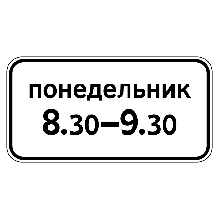 Дорожный знак 8.5.7 указывает дни недели и время суток, в течение которых действует знак