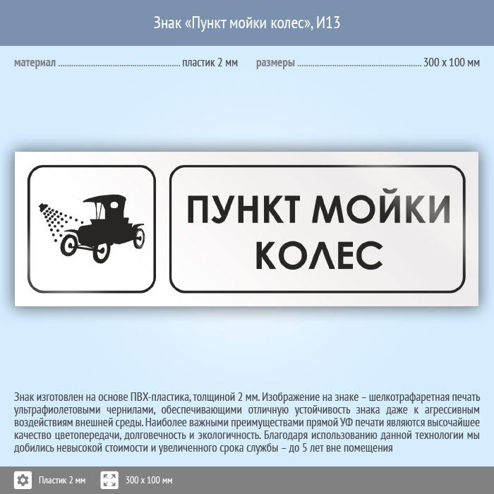 Знак «Пункт мойки колес», И13 (пластик, 300х100 мм)