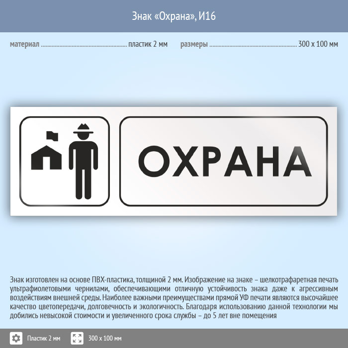 Знак «Охрана», И16 (пластик, 300х100 мм)