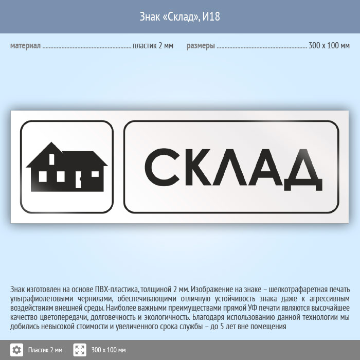Знак «Склад», И18 (пластик, 300х100 мм)