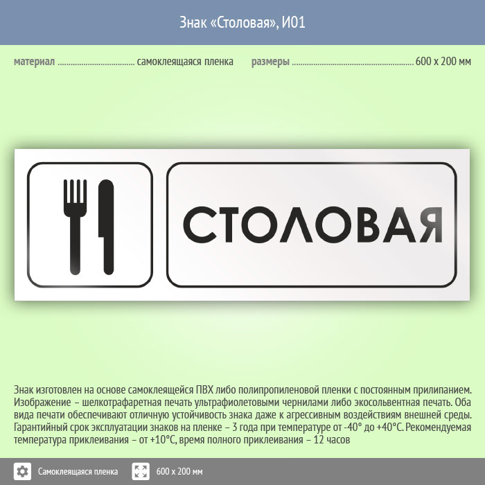 Знак «Столовая», И01 (пленка, 600х200 мм)