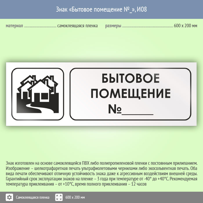 Знак «Бытовое помещение №_», И08 (пленка, 600х200 мм)