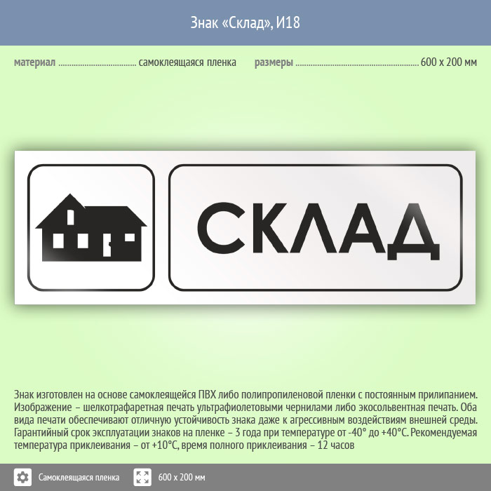 Знак «Склад», И18 (пленка, 600х200 мм)