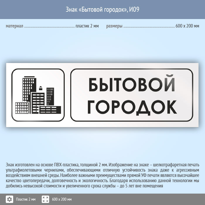 Знак «Бытовой городок», И09 (пластик, 600х200 мм)