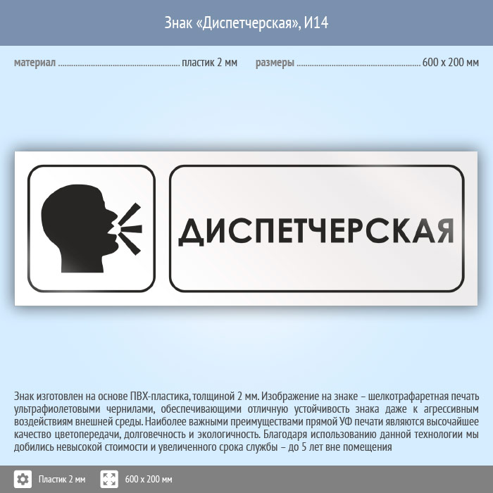 Знак «Диспетчерская», И14 (пластик, 600х200 мм)