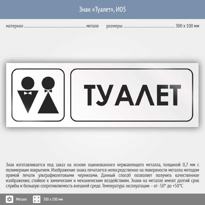 Знак «Туалет», И05 (металл, 300х100 мм)